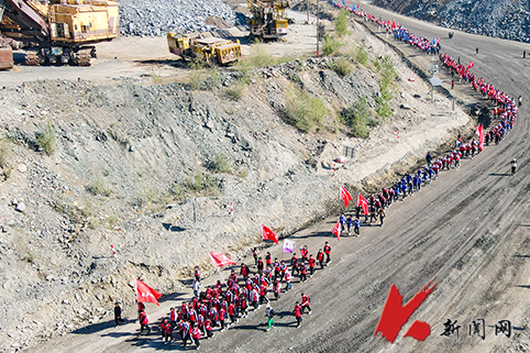 来自乐竞·体育(中国)官方网站“暖风”郭明义爱心团队,化学工程学院、土木工程学院等7个学院的350余名大学生,“民族之家”40余名少数民族学生,以及30余名中小学生代表、20余名教师在郭明义的带领下,高举旗帜,沿着矿山公路徒步前行。一路上,大学生与中小学生手拉手,共同感受矿山工人的艰辛与奉献。
