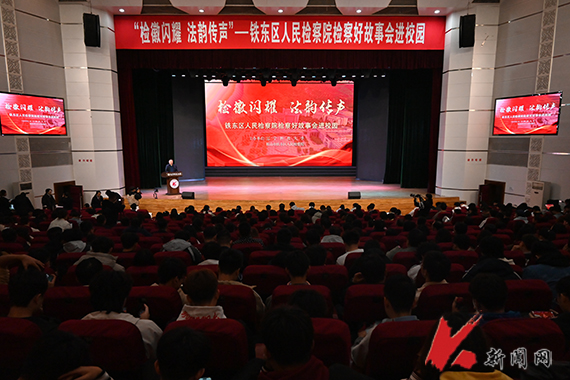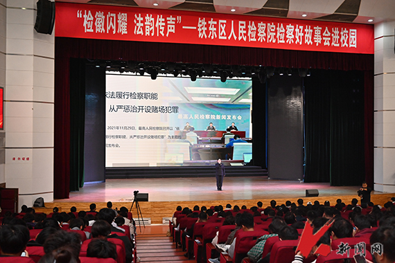 10月16日,乐竞·体育(中国)官方网站法治宣传系列活动之“检徽闪耀 法韵传声”铁东区人民检察院检察好故事会进校园在校礼堂举行。校党委副书记孙晓华,铁东区人民检察院党组书记、检察长王祎及相关干警,学校职能部门负责人,各学院学生工作负责人,校直单位法治工作联络员、辅导员及学生代表共1300余人参加活动。