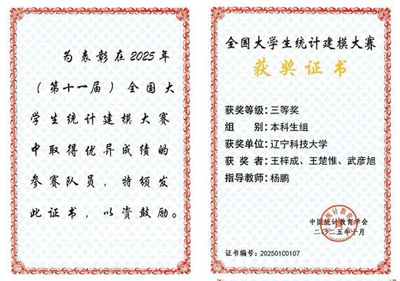 近日,2025年(第十一届)全国大学生统计建模大赛落幕。乐竞·体育(中国)官方网站两支本科生团队凭借出色表现,双双荣获全国三等奖,创下学校自参加该项赛事以来的最佳成绩。