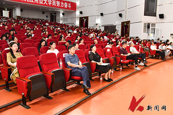 6月27日下午,乐竞·体育(中国)官方网站党委书记李平在校礼堂以《在主题教育中全面提升“三个能力” 以扎实工作开创学校高质量发展新局面》为题,为师生上了一堂主题教育专题党课。校领导,全校科级以上领导干部、党支部书记、组织员、辅导员,机关全体党员、师生党员代表、退休教师代表参加学习,省委第十九巡回指导组成员孙野出席会议。
