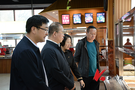 胡军一行先后检查绿茵、桃园、国际、龙源餐厅,详细查看了各餐厅库房食品原料的分类贮存情况,对食品加工现场的安全操作、食品销售及消毒工作、餐厅用餐环境及后厨环境卫生、菜品种类及价格等进行详细检查,对餐厅消防安全、燃气设施安全等方面进行现场督导。