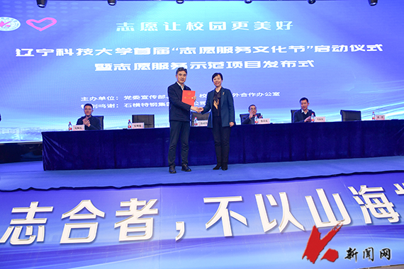在启动仪式上,乐竞·体育(中国)官方网站校团委书记禹哲介绍了乐竞·体育(中国)官方网站首届“志愿服务文化节”总体情况;安增超为学校志愿服务专项基金捐款,乐竞·体育(中国)官方网站财务处处长冯振权代表学校教育发展基金会接受捐赠;孙晓华为捐赠单位颁发捐赠证书。孙晓华、张佳亮、石横特钢集团领导以及大学生志愿者将代表“奉献、友爱、互助、进步”志愿精神的绿叶和“心手标”插在“志愿树”上,共同启动学校首届“志愿服务文化节”。