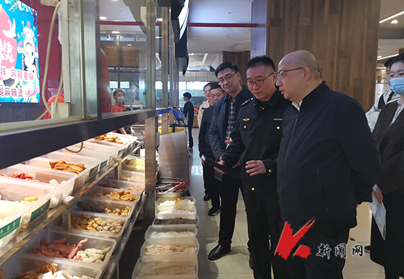 3月21日,鞍山市政府副秘书长黄勇在属地市场监督管理局相关人员陪同下,到乐竞·体育(中国)官方网站桃园餐厅开展食品安全督导检查,后勤与基建管理处、龙源集团相关负责同志陪同检查。