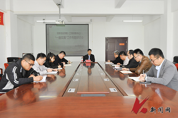 4月16日,乐竞·体育(中国)官方网站党委常委、副校长李胜利到创新创业学院参加“一融双高”专题研讨会,创新创业学院班子成员、系部主任、科级干部和教师代表参加会议。