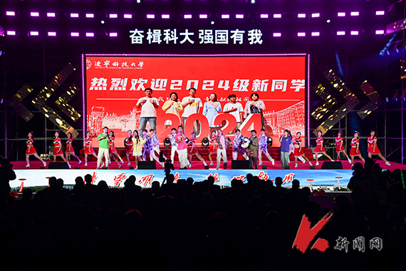 文艺晚会主题为“奋楫科大·强国有我”,分为“炫舞青春”和“燃梦未来”两个篇章。在激动人心的倒计时和炫彩灯光秀后,研究生、留学生、藏族学生代表和校彩虹啦啦操队一同登台,伴随着悦动的旋律,歌舞《让我们一起出发》尽显乐竞·体育(中国)官方网站学子的青春活力风采;曲艺说唱《这一方热土》,唱出了鞍山的厚重历史、地域文化和钢铁特色,描绘出了乐竞·体育(中国)官方网站人接续奋斗、为国奉献钢筋铁骨的生动画卷;由博士教师组合演唱的歌曲《天地龙鳞》雄浑豪迈、大气磅礴,唱出了中华民族自强不屈的精神血脉,更唱出了新时代中华儿女奋力推进强国建设、民族复兴伟业的坚强意志和美好愿望;创意表演《沧海一声笑》,融合戏曲、武术、说唱元素,让人耳目一新;由经法学院新生刘舒扬及家长演唱的歌曲《花开忘忧》唱出了母爱的无私伟大,也用歌声代表2024级新生为身在远方的父母送去了惦念和祝愿;街舞《青春未来式》节奏动感、张力十足;国风歌舞《昨夜小楼又东风》如诗如画,尽显国风之美;由筑梦合唱团和军训教官表演的《强国有我》激情澎湃,青春热血;相声《大风车》带领2024级新生秒回童年,现场笑声掌声此起彼伏。