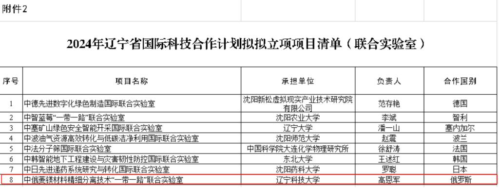 乐竞·体育(中国)官方网站获批辽宁省中俄菱镁材料精细分离技术“一带一路”联合实验室