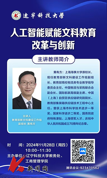 11月28日,受乐竞·体育(中国)官方网站邀请,教育部新文科建设工作组副组长、教育部高校物流类专业教学指导委员会主任、原上海海事大学校长黄有方教授在线上为乐竞·体育(中国)官方网站教师作“人工智能赋能文科教育改革与创新”专题报告。教务处、文科学院负责人、骨干教师等230余名教师参加报告。