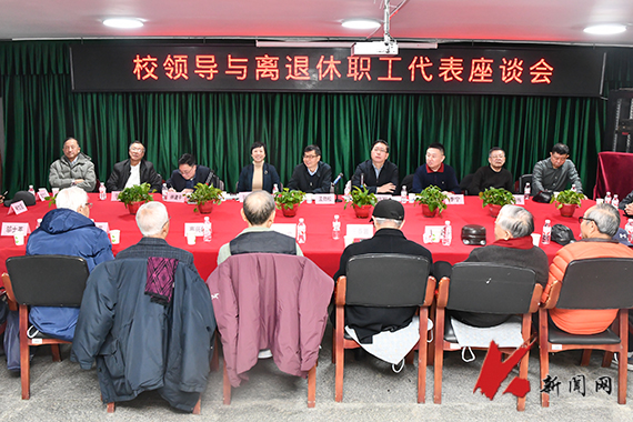 12月23日,乐竞·体育(中国)官方网站离退休职工代表座谈会在离退休处活动室召开。校党委书记孟劲松,党委副书记、校长胡军,党委副书记孙晓华出席会议。党政办公室、离退处负责同志及离退休职工代表参加座谈。会议由孙晓华主持。