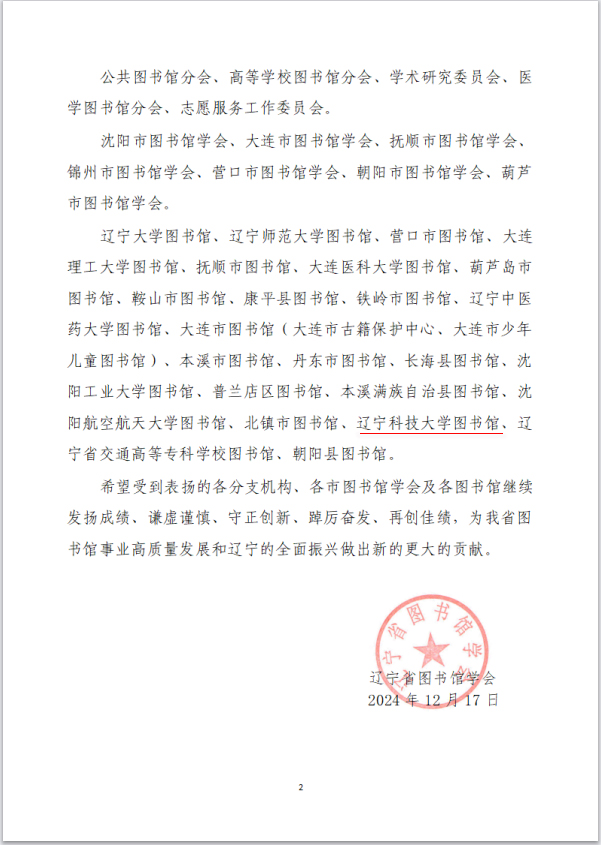 乐竞·体育(中国)官方网站图书馆获辽宁省图书馆学会通报表扬