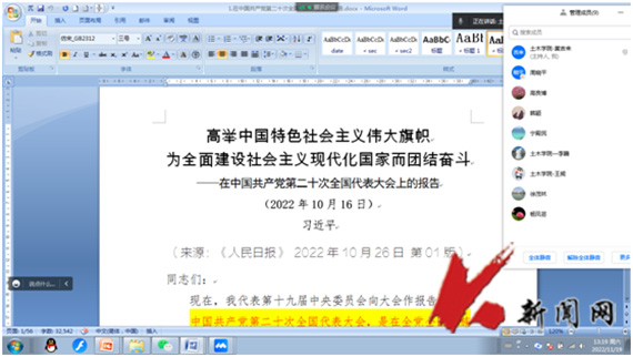 11月至12月,材冶学院党委、化工学院党委、土木学院党委、管理学院党委、建艺学院党委、矿业学院党委、应用学院党委、机关党委、创新创业学院直属党支部、国际教育学院直属党支部集中组织各支部党员学习党的二十大报告原文、中国共产党第二十次全国代表大会关于《中国共产党章程(修正案)》的决议、《中国共产党章程》等内容,坚持原原本本学原文、系统深入悟原理、结合实际谈心得,在“学”字上下深功夫,多学一步,深学一层,通过谈心得体会,讲工作打算,在校园内掀起学习交流热潮,进一步激发全校师生将党的二十大精神学习成效转化为工作实效,在新时代以新理论新面貌展现新担当实现新作为。