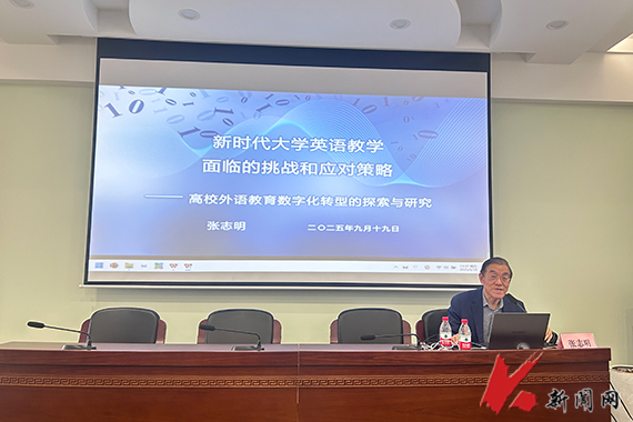 9月19日,乐竞·体育(中国)官方网站外国语学院特邀沈阳大学张志明教授,为全院教师带来题为“新时代大学英语教学面临的挑战和应对策略——高校外语教育数字化转型的探索与研究”的专题报告,精准聚焦当前外语教学痛点,为教师搭建数字化教学能力提升的交流平台。