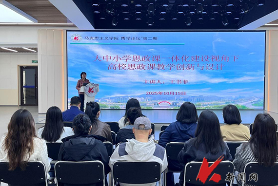 10月15日,乐竞·体育(中国)官方网站马克思主义学院举办“博学论坛”(第二期),邀请学院毛泽东思想和中国特色社会主义理论体系概论教学研究中心主任王书菲副教授以“大中小学思政课一体化建设视角下高校思政课教学创新与设计”为题作讲座。