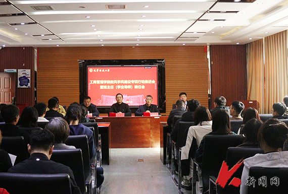 11月6日,工商管理学院召开教风学风建设专项行动推进会暨班主任(学业导师)聘任会。学院领导班子成员、各系室主任、全体辅导员、新聘任班主任(学业导师)以及本科各班班长参加了会议。