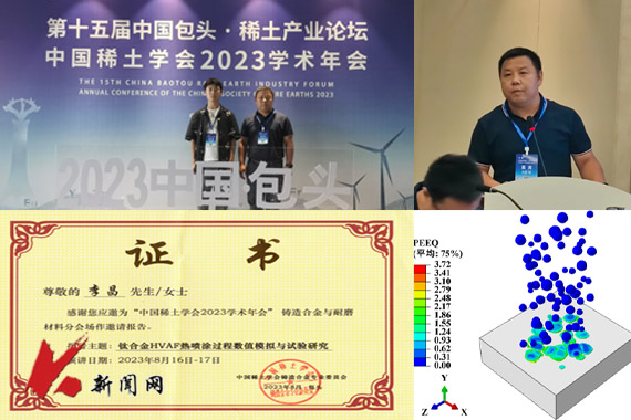乐竞·体育(中国)官方网站机械工程与自动化学院节能环保冶金新工艺及装备开发创新团队李昌教授带领学生受邀参加会议,担任铸造合金与耐磨材料分会场主持人,并作了题为《钛合金HVAF热喷涂过程数值模拟与试验研究》的邀请报告。硕士生赵晓玉作了“耦合详细化学动力学的常规和悬浮HVOF热喷涂机理研究”的学术报告。通过本次会议增进了与“耐磨材料”所属领域内高校、企业、研究院所专家、同行们的交流与互动,开拓了学术视野。(供稿单位:机械学院 图片来源:机械学院)