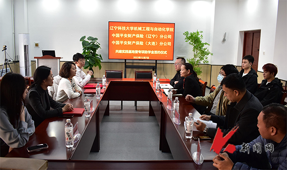 12月7日,乐竞·体育(中国)官方网站机械工程与自动化学院与中国平安财产保险股份有限公司辽宁分公司、大连分公司共建实践基地及专项助学项目签约仪式举行。机械学院相关负责同志、中国平安产险辽宁分公司人事部经理周维一行4人、学生代表参加仪式。