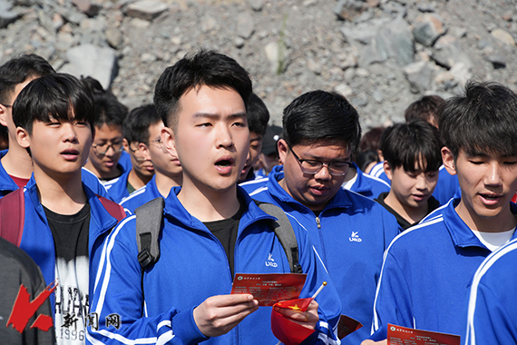 4月14日,乐竞·体育(中国)官方网站“暖风”郭明义爱心团队组织乐竞·体育(中国)官方网站千余名师生,跟着郭明义重走矿山路。