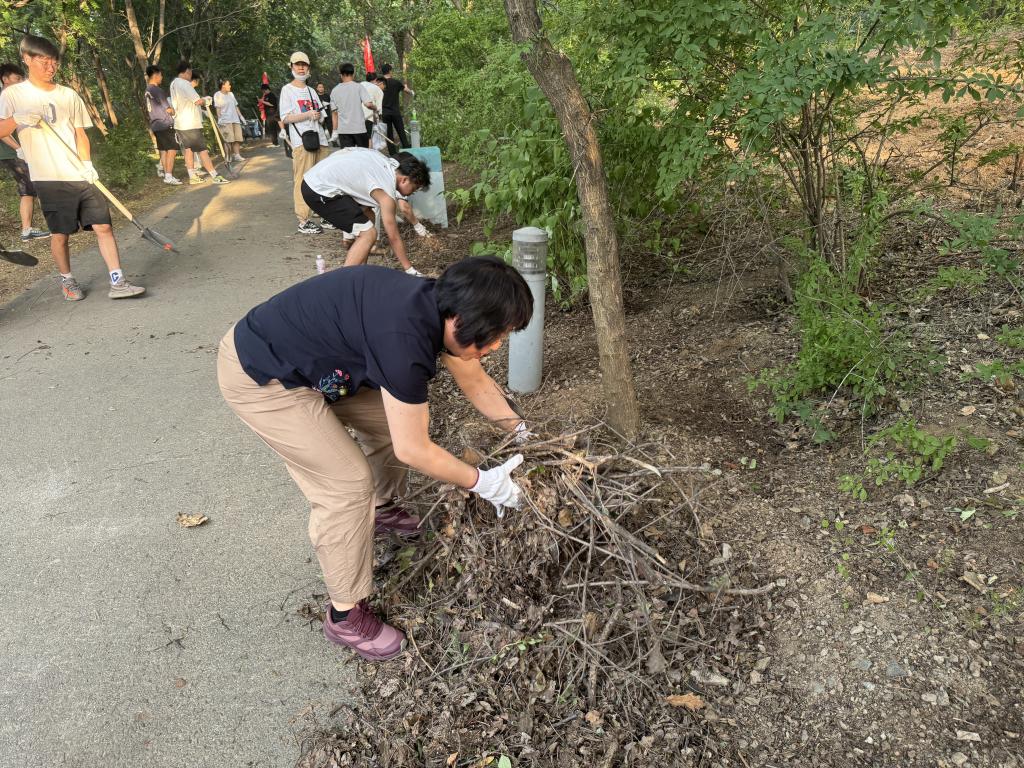 活动中,毕业生党员们踊跃参加,顶着燃燃烈日,带着劳动工具,沿着校园后山山路认真清扫,捡拾垃圾,平整坑地,爱校如家见行动,为保护清洁环境贡献自己的一份力量,营造了一个更加整洁、美丽的自然环境,也展现了他们的团结协作和环保意识。毕业生党员康婷同学表示,通过这次清扫志愿服务活动,“我更加深刻地理解了党员的责任和担当,感谢母校四年的培养,希望自己在离校前再为母校多做点事,以实际行动回报母校。”