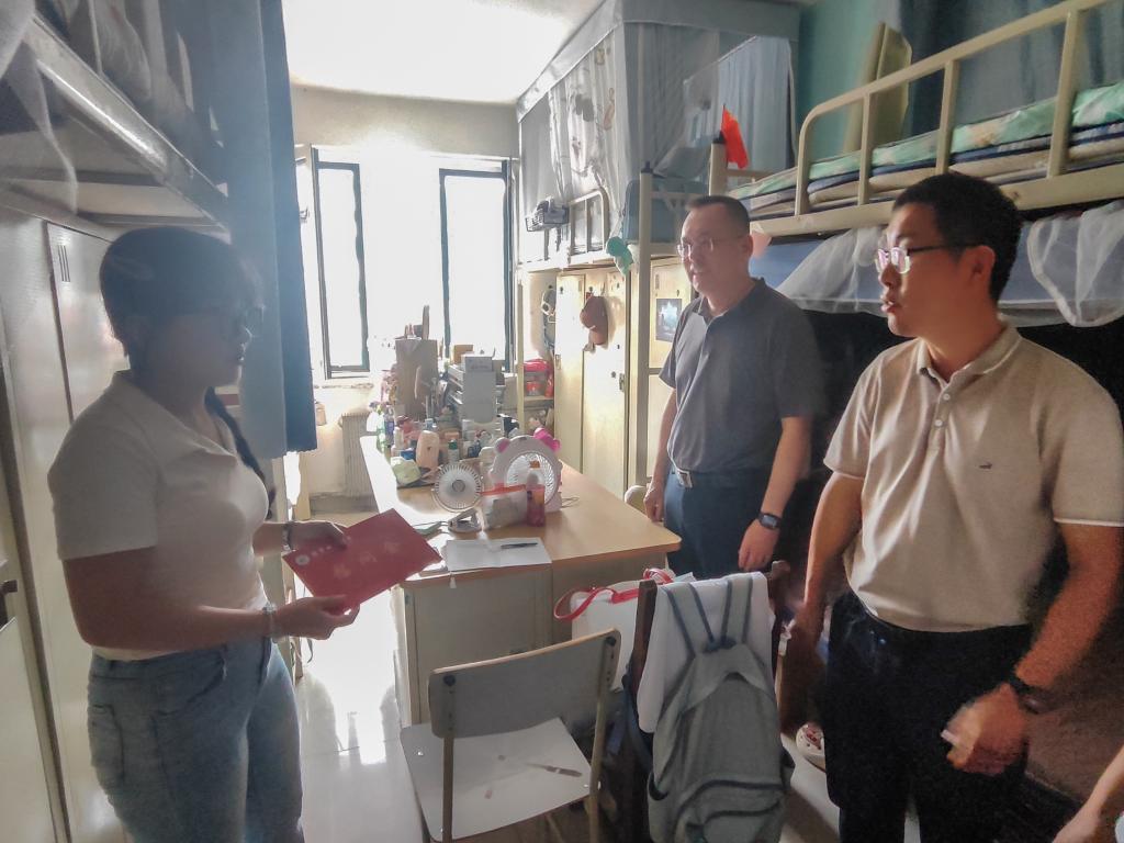 走访过程中,学院领导与学生党员亲切交谈,详细询问了解其学习、生活和家庭情况,认真倾听学生遇到的困难,鼓励学生要坚定理想信念,积极发挥党员先锋模范作用,把党组织的关怀转化为奋进力量,在困境中磨砺意志,克服困难,努力学习专业知识,提升自身能力。同时,学院领导叮嘱辅导员和学办相关人员要持续关注困难学生情况,积极落实帮扶政策,为他们排忧解难。