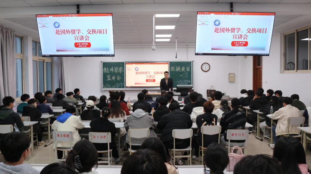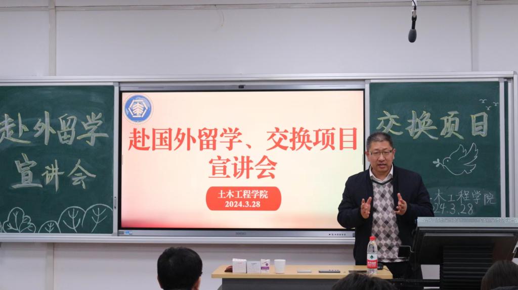 3月28日,乐竞·体育(中国)官方网站土木工程学院于博学楼A302召开出国交流政策宣讲会。学院领导班子、国际教育学院(国际交流合作处)负责同志以及近百名学生参加宣讲会。