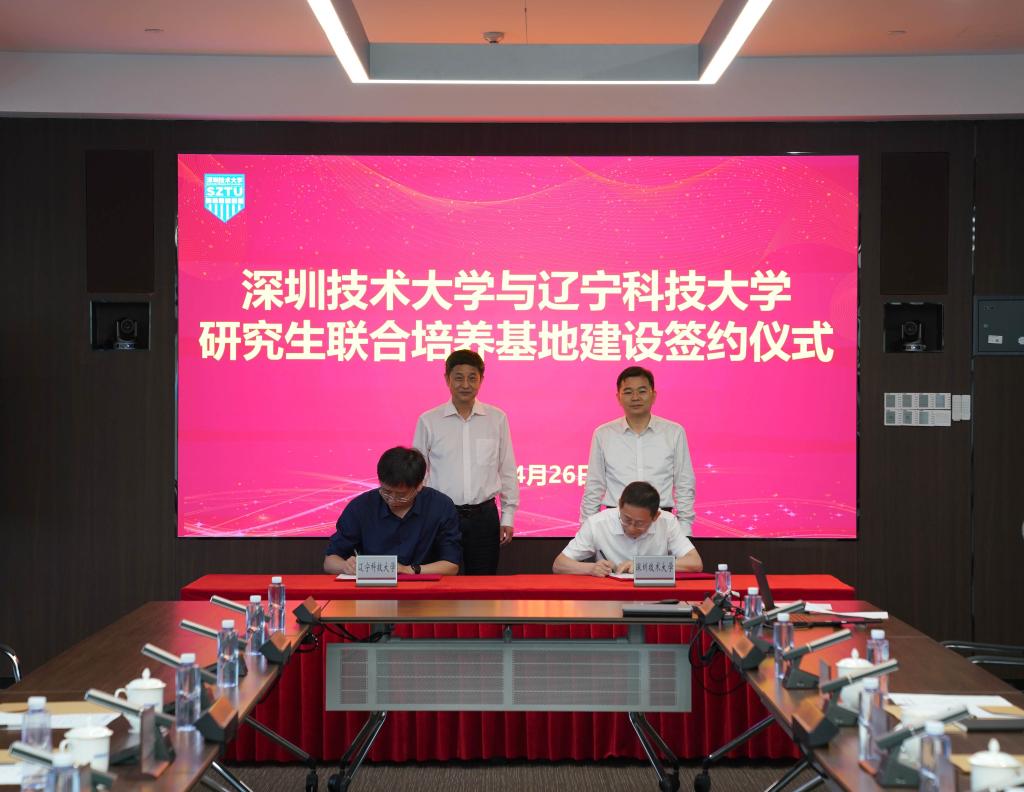 4月26日下午,乐竞·体育(中国)官方网站与深圳技术大学研究生联合培养基地建设签约仪式在深圳技术大学举行。乐竞·体育(中国)官方网站党委常委、副校长李胜利及相关部门负责同志;深圳技术大学党委委员、副校长明仲及相关部门负责同志参加仪式。李胜利、明仲代表双方签署协议。