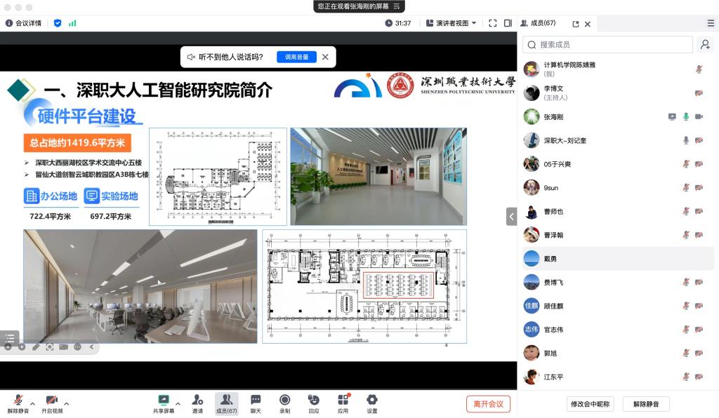 启动会上,副院长艾青首先介绍了本年度计算机学院与深职大研究生联合培养实施细则和联合培养过程的相关要求。然后卢山院长介绍了智能科学与工程研究院开展研究生联合培养的基本情况,相关研究院的深职大研究生导师也对2025年拟开展课题方向和招生要求进行详细说明。最后副院长艾青强调了联合培养的相关时间节点,对参加会议的师生表达了感谢,并号召同学们积极参加此次联合培养,增长见识,全面提升个人的科研能力,拓宽视野,实现更高的目标。(计算机与软件工程学院供稿)